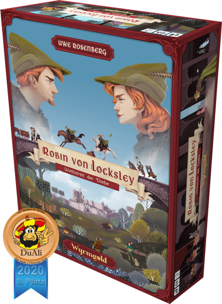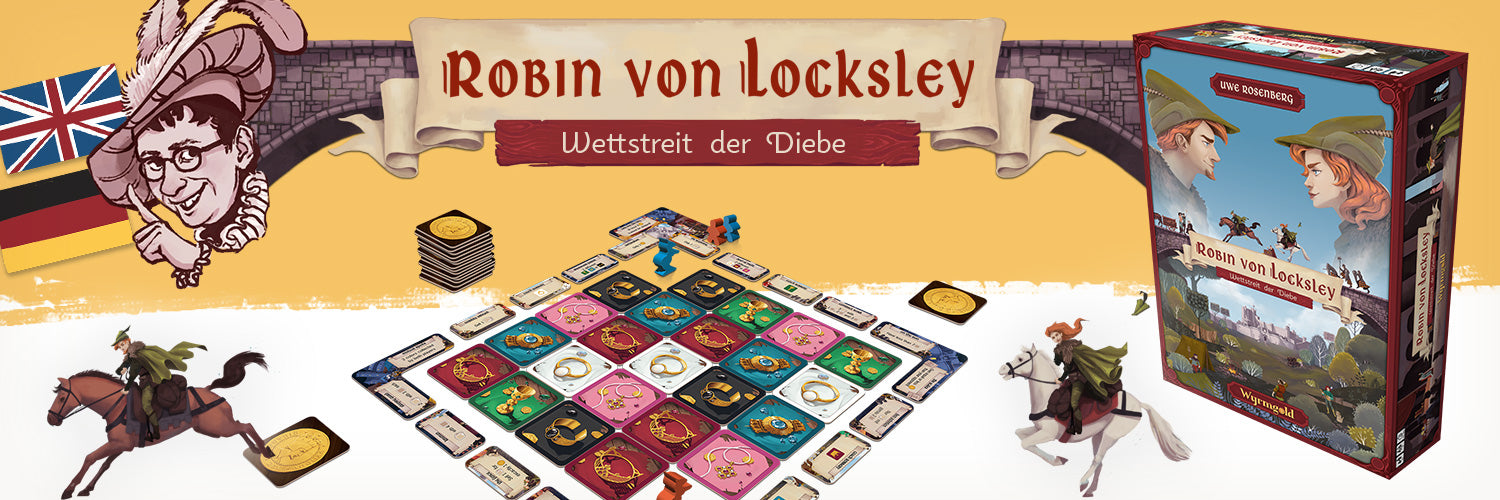 Der großartige Uwe Rosenberg hat mit Robin von Locksley ein Wettrennen der Diebe – für 2 Spieler – geschaffen und uns als Verlag ausgewählt, um seine Vision in euren Spieleschrank zu bringen. Folgt uns ins England des frühen Mittelalters und wetteifert um den Titel des größten Diebes aller Zeiten!